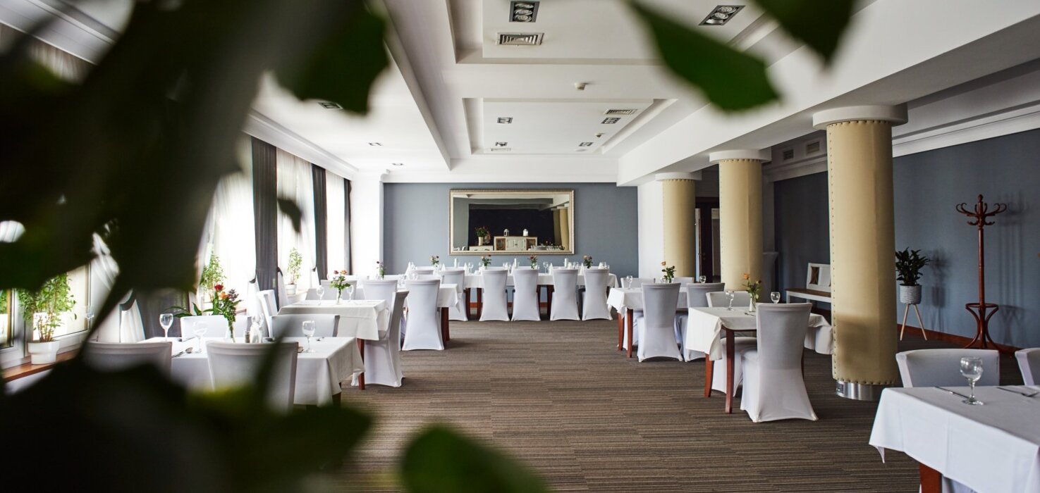 Sala restauracyjne pomieści ok. 70 osób przy stolikach dwu, cztero i sześcioosobowych. Przy ustawieniu biesiadnym możemy zapewnić ok. 110 – 115 miejsc. Wystrój sali restauracyjnej oraz profesjonalna obsługa stanowi doskonałą oprawę dla uroczystych kolacji, przyjęć rodzinnych oraz spotkań biznesowych.